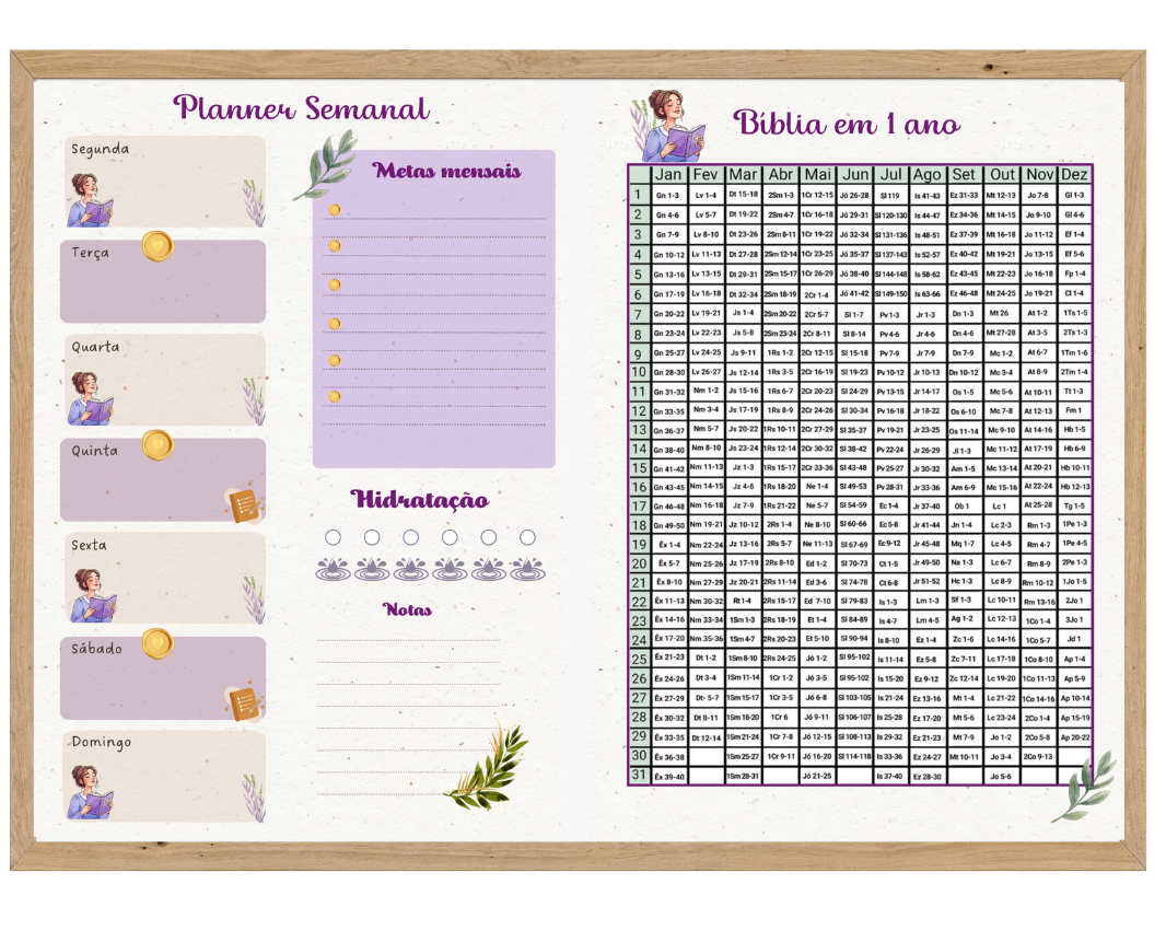 ✨ Quadro Visual – Planner Semanal + Bíblia em 1 Ano